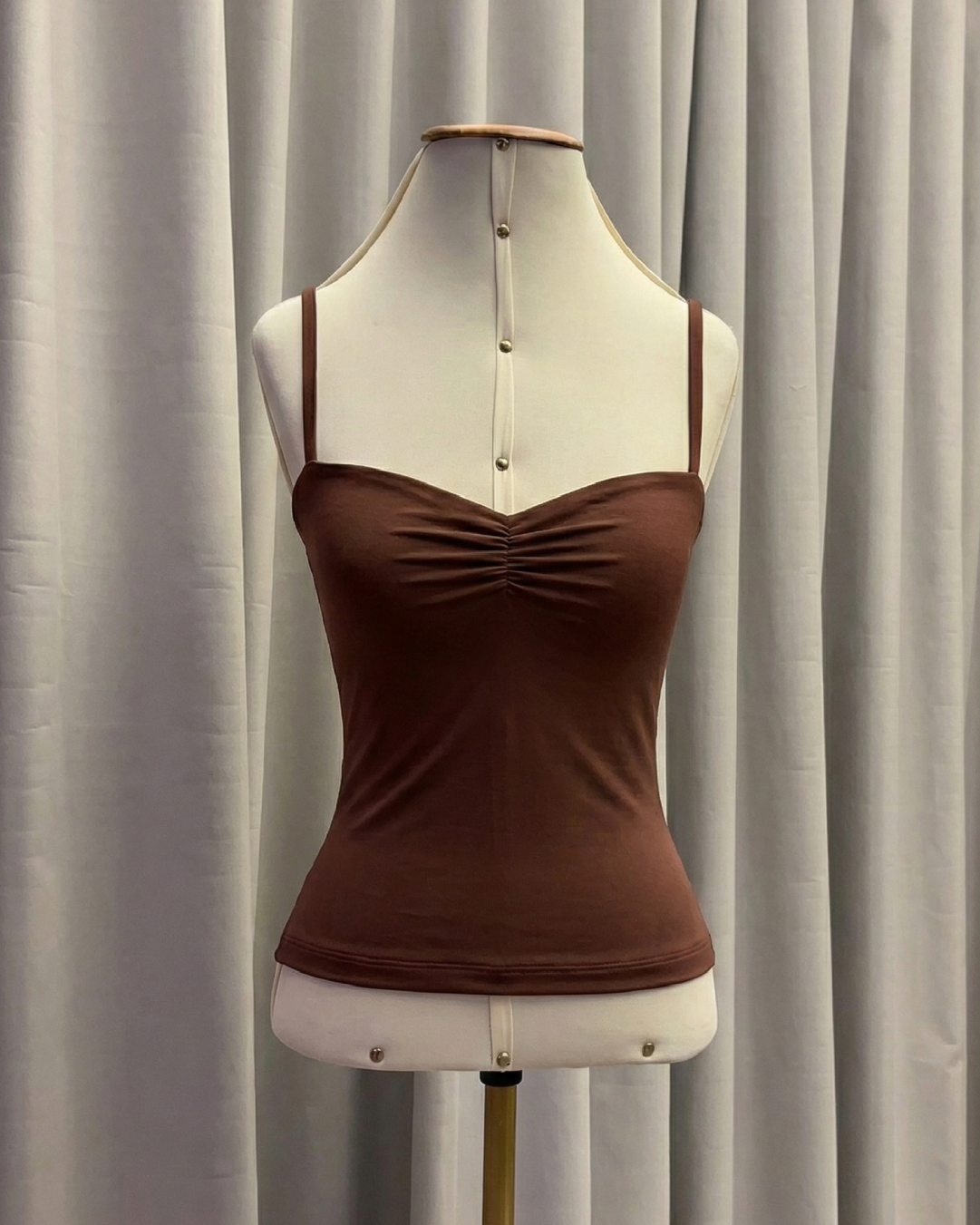 a blusa corcovado possui a frente toda dupla com decote coração, alça fina e detalhe drapeado no busto, trazendo um toque romântico à peça. Ela tem o comprimento médio, cobrindo o umbigo. Por aqui, amamos peças básicas que valorizam qualquer look e a blusa corcovado é uma escolha perfeita para o dia a dia.